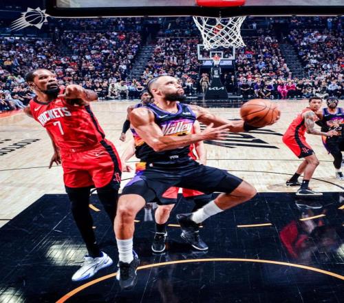 伊森抢断,随后出现失误,狄龙远投三不沾,古德温、霍勒迪各有上篮得分。伊戈达罗抛投得手,阿门回敬暴扣。古德温失误,小贾轰进远投。布克2罚全中,杜兰特回敬三分球,火箭打出了30比12的进攻狂潮,得以领先15分锁定大局。菲尼克斯请求暂停,古德温外线打铁,马克威廉姆斯勾手得分,霍勒迪2罚全中。格林打成了2+1,申京、马克威廉姆斯各有失误,小贾外线不中,菲尼克斯挑战判罚成功,布克远投不进。