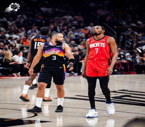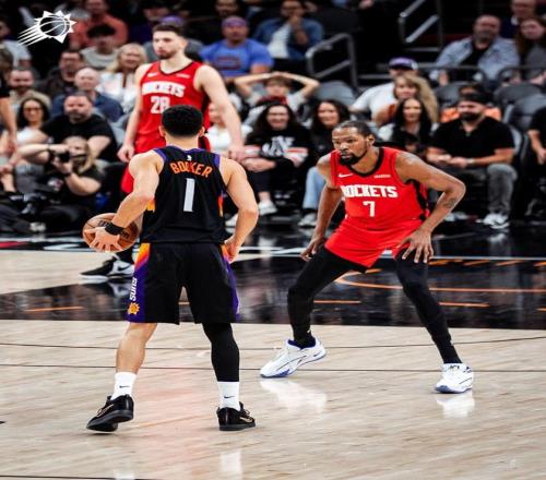 北京时间4月8日,NBA常规赛继续进行。火箭奔赴客场与太阳展开激战,此役是两队本赛季的第四次交手,前3次对决休斯顿获得全胜。亚当斯赛季报销,范弗利特伤停,乌杜卡的首发五虎是杜兰特、申京、小贾巴里史密斯、阿门汤普森与谢泼德,伊森担任替补。6连胜的火箭,目前正致力于冲击西部前4。菲尼克斯全员健康,太阳队的首发五虎是德文布克、杰伦格林、狄龙布鲁克斯、古德温与马克威廉姆斯。杜兰特与杰伦格林、狄龙布鲁克斯分别对阵旧主,也让本场比赛更加充满看点。