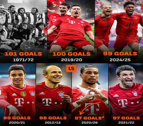 这是拜仁队史单赛季德甲进球纪录,2019-20赛季他们打进100球,险些追平的。他们有数次想要努力破纪录失败这次,他们是真想要努力破了。在主帅孔帕尼手下,拜仁场均进球达到3.6个,效率排名德甲历史第一的。